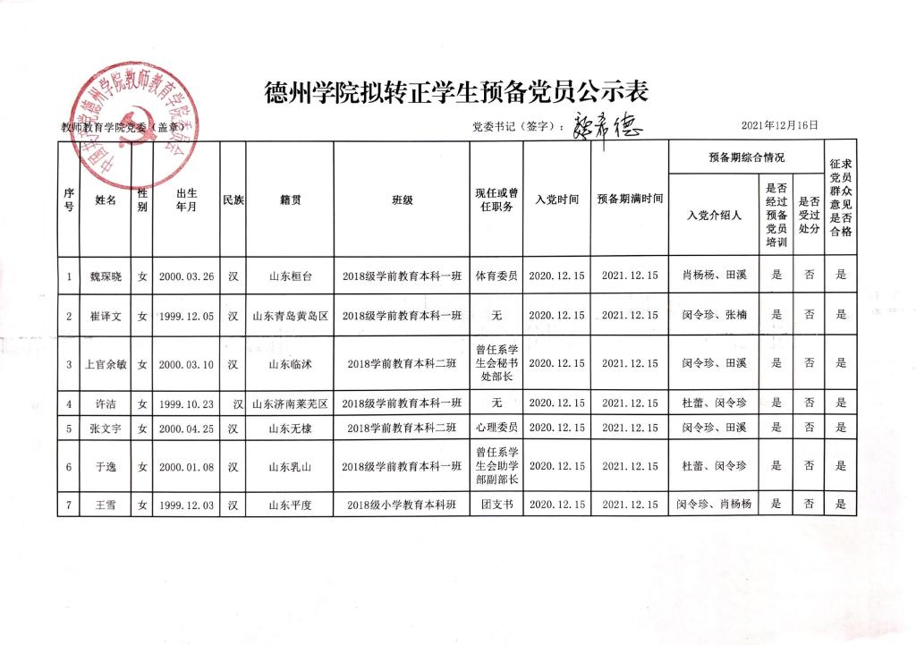 德州学院祖雄兵视频17分钟吃瓜下载拟接收学生预备党员公示表