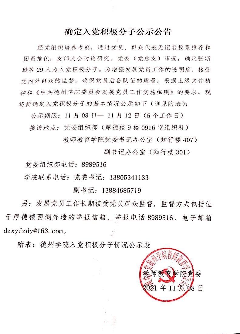 德州学院祖雄兵视频17分钟吃瓜下载入党积极分子情况公示表