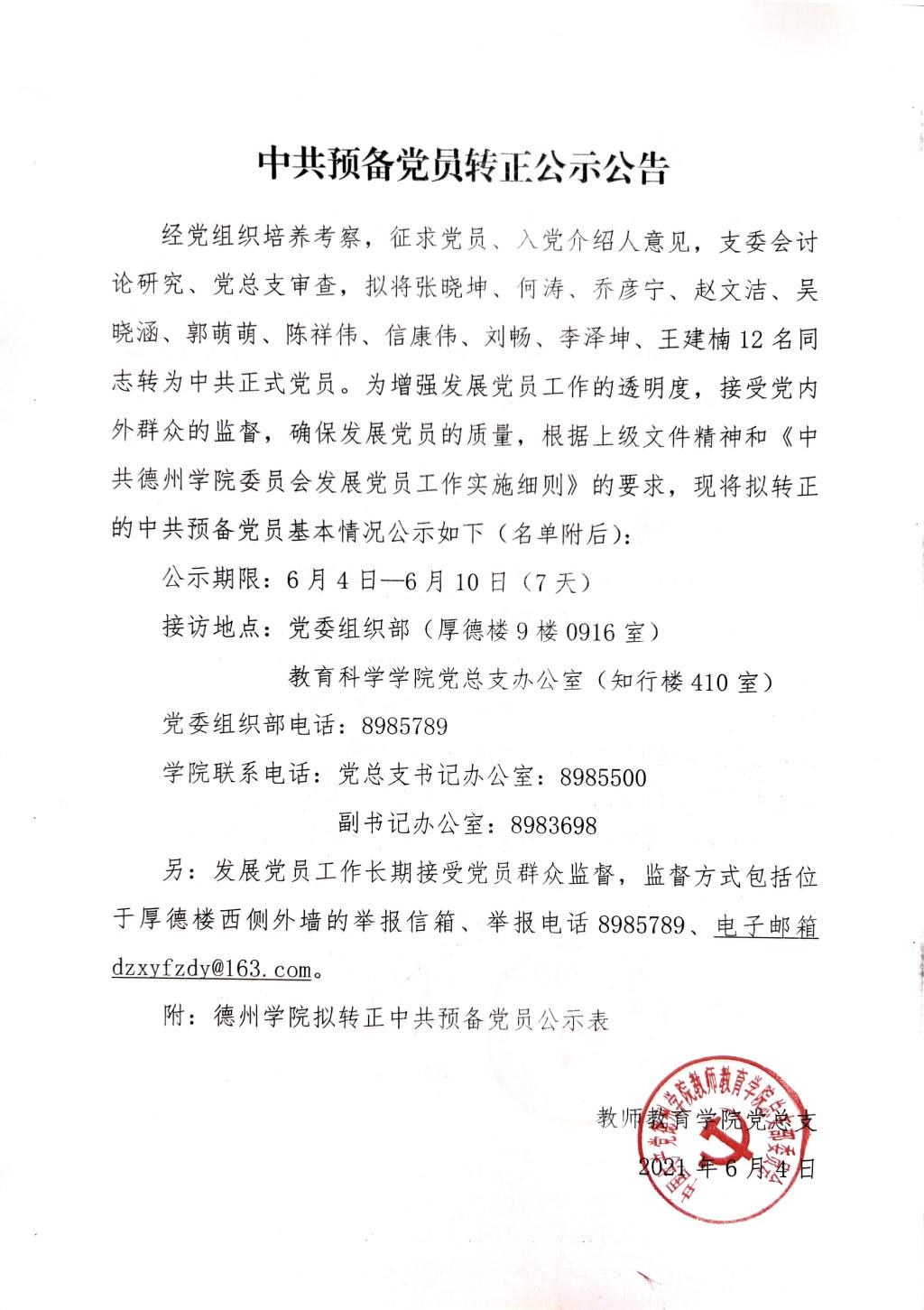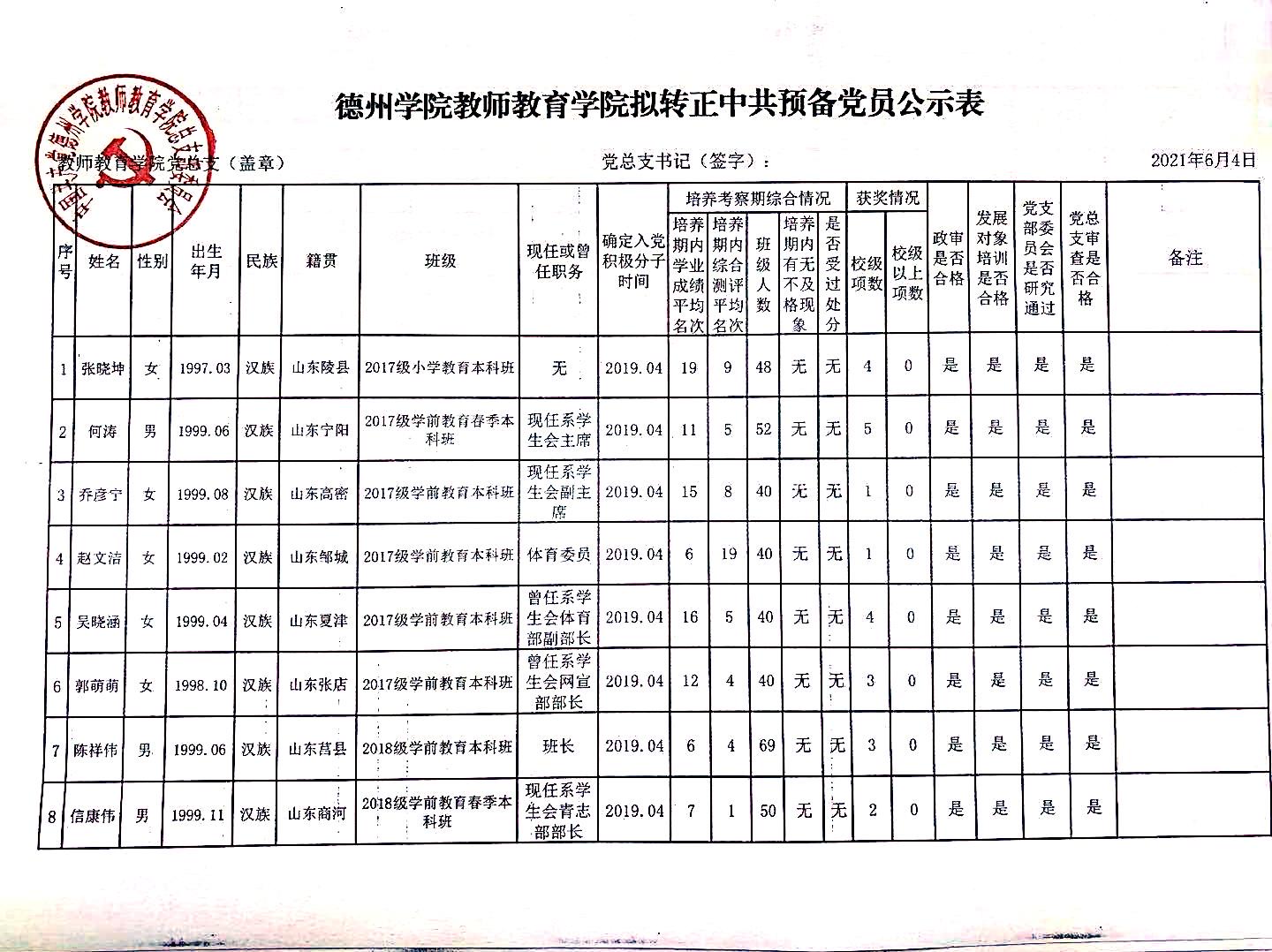 德州学院祖雄兵视频17分钟吃瓜下载拟转正中共预备党员公示表