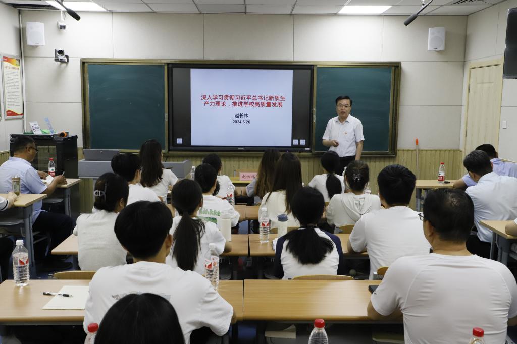 赵长林强调,新质生产力理论是马克思主义生产力理论中国化时代化的最新理论成果,我们要结合学校实际、学院实际、学科专业实际和岗位工作实际,读原著、学原文、悟原理,把新质生产力基本概念、科学内涵、时代特征、重大意义和实践要求学懂弄通、学深悟透,切实落实到学校人才培养、科学研究、文化传承创新、服务社会、内部治理体系建设等各项工作的改革创新中,加强数字赋能、要素配置、管理制度创新。