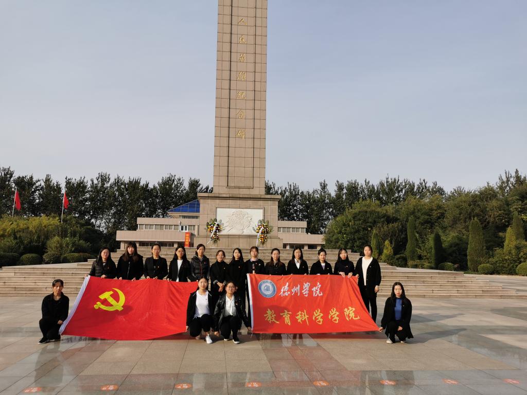 为加强党风廉政建设宣传教育,缅怀先烈的信仰,弘扬先烈的精神,继承先烈的遗志,用党的伟大革命精神激励教育科学学院学生党员不忘初心,牢记使命,砥砺前行,传承以爱国主义为核心的民族精神,践行社会主义核心价值观,贯彻落实习近平新时代中国特色社会主义思想,争做新时代“四有”青年。特此,德州学院教育科学学院于10月15日在德州市烈士陵园举行“祭扫陵园墓,缅怀先烈情”红色教育活动。