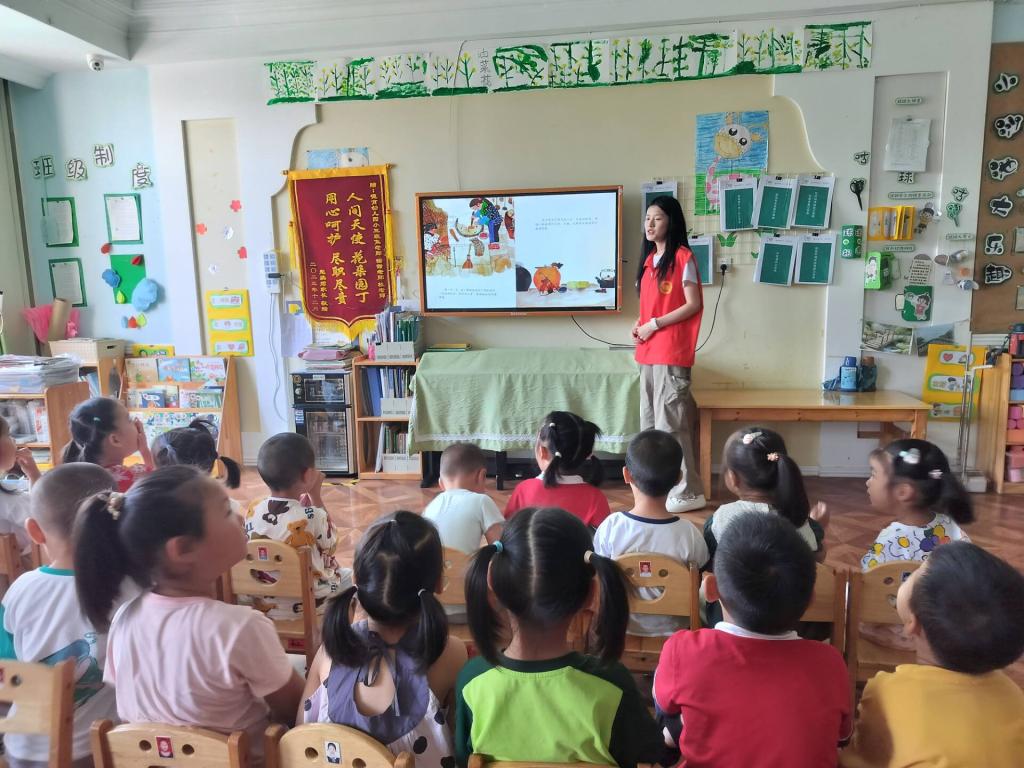 活动过程中,志愿者们选取《手不是用来打人的》、《三只小熊去郊游:不跟陌生人走》和《香香甜甜腊八粥》等绘本,通过图片展示与表演的形式,生动呈现绘本内容,并与孩子们积极互动。过程中向孩子们传授了礼貌待人、增强自我保护意识的重要性以及传统文化等方面的知识。这些故事不仅提高了孩子们的生活素养,还引导他们树立正确的价值观,促进身心健康成长,同时营造了浓厚的读书氛围,让孩子们在阅读中陶冶情操。活动最后,志愿者通过问答的方式,与孩子们一同回顾绘本内容,进一步提升他们对绘本的理解。