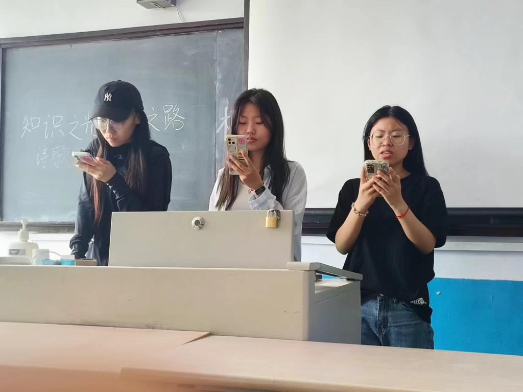 活动通知发布后,同学们反响热烈,积极报名参与。本次朗诵活动包括个人朗诵与组合朗诵两类展示形式。在活动过程中,参与个人朗诵的同学们着装得体、精神饱满,自信地站在舞台上,分享他们带来的诗歌表演;组合朗诵的同学们则以小组为单位,有序上台,他们协同默契,通过声音、表情及肢体语言将诗歌的意境与情感诠释得入木三分。活动现场气氛热烈,同学们热情高涨。志愿者对同学们的精彩演出予以点评,并公布了最终成绩。
