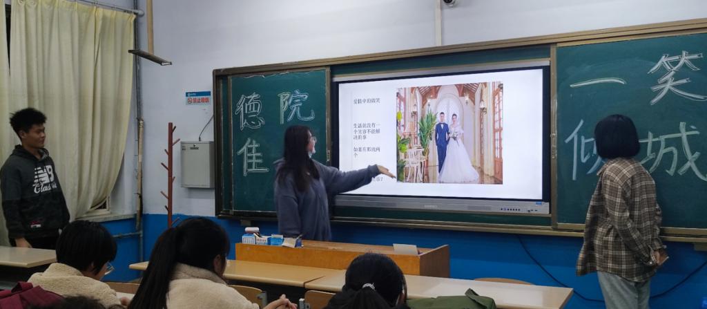 活动伊始,相关人员确定活动流程与分工,并下发通知进行活动邀请,调动同学们参与活动的积极性,统计好参与活动的人数并完成相应的准备工作。活动中期,首先,活动以一段视频引出微笑活动主题。在生活中,面露平和欢愉的微笑,充实满足,乐观向上,善待人生,表明对自己的能力有充分的信心,以不卑不亢的态度与人交往,使人产生信任感,容易被别人真正地接受。其次,通过小游戏来确定同学们上场次序,同学们按照次序对自制的PPT进行解说,并分享自身心得体会。同时,活动以游戏贯穿始终,提高活动趣味性。最后,相关人员奖励同学们糖果来激励同学们热爱生活,保持微笑。活动后期,由成员间进行活动总结与反思。相关人员做好学时统计,并对活动进行后期反馈。