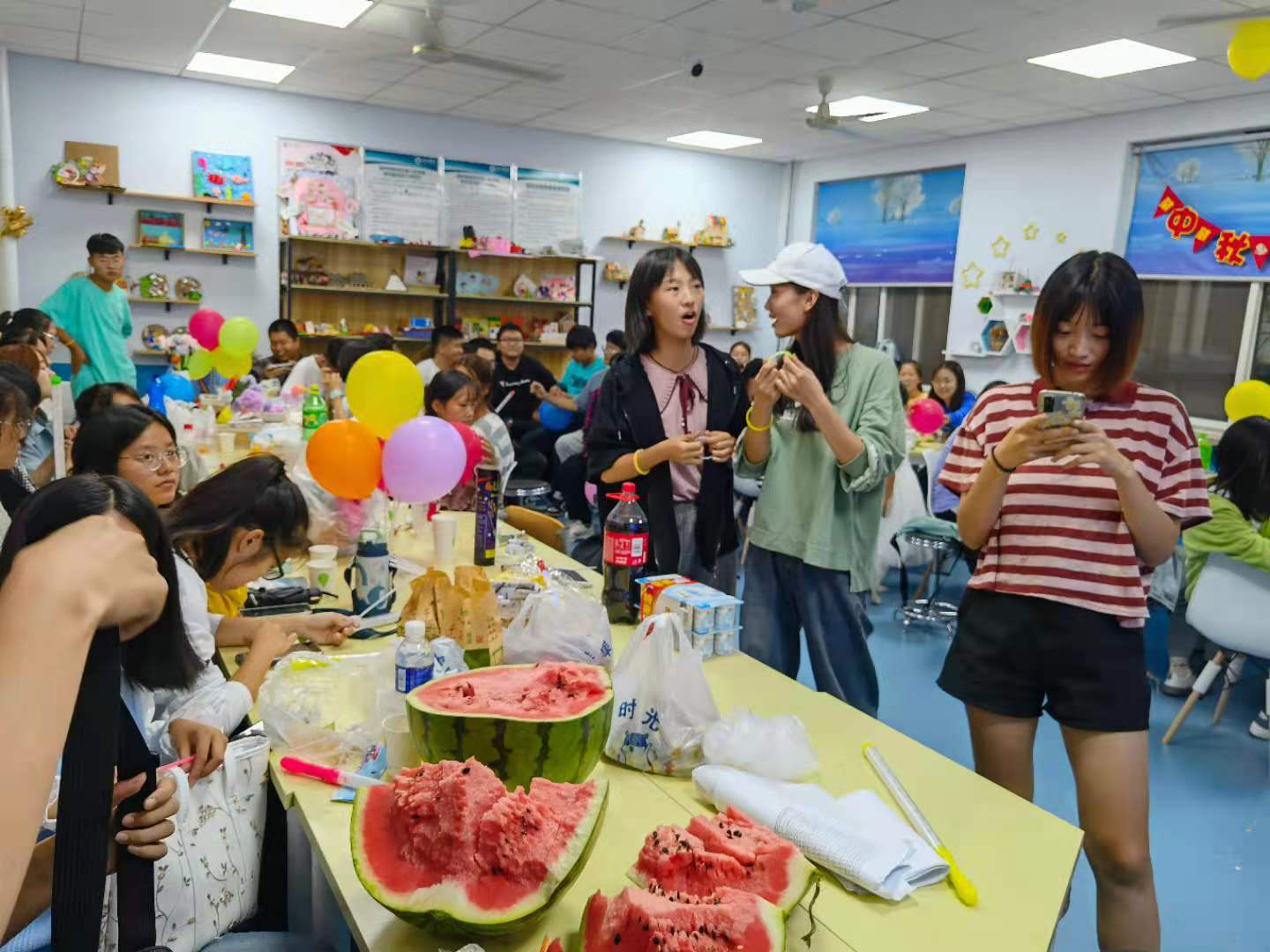 9月21日晚,以班级为单位,各班级围绕主题设计方案,在各自教室开展中秋晚会。活动中,各个班级通过中华经典诵读、小品、歌舞等形式展开,活动过程中,分发月饼,同学们感受到了来自学院和老师的深切关怀,让同学们感受到了传统节日所蕴含的深厚文化内涵,以此弘扬民族精神和传统文化。师生同堂欢庆,歌声、乐声、欢笑声充斥着整个校园,使得今年的中秋佳节的校园里增添了别具一格的祥和气氛。