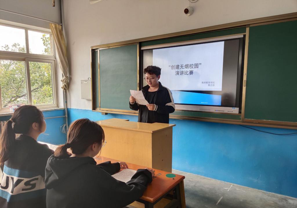 为进一步提高同学们的无烟意识,培养健康文明的新时代优秀学生,推动无烟校园的创建,德州学院祖雄兵视频17分钟吃瓜下载于10月11日上午在知行楼成功举办“创建无烟校园 ”演讲活动。