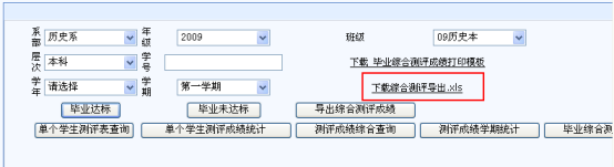 2.综合查询,请选择相应的院别、年级、层次、学年、学期等信息,点击“测评成绩综合查询”,系统将会根据你选择的内容显示相应的查询结果。如图9所示。