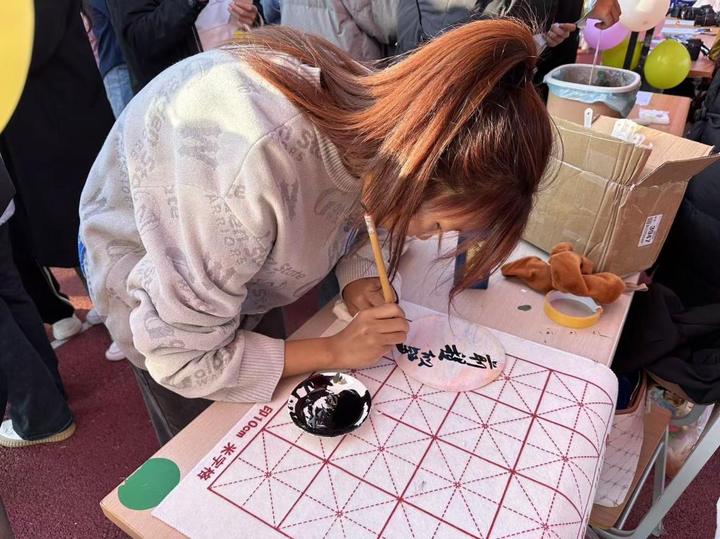 在书画社的活动区域,书画社成员们精心挑选了优质的扇面和漆料,设计了多种风格的图案供新生们选择。新生们挑选心仪的扇面图案进行了漆扇制作。从调色、上色到晾干,每一个步骤都充满了挑战与乐趣。同学们纷纷发挥创意,将传统与现代元素相结合,制作出了各具特色的漆扇作品。健美操协会与夜跑协会成员各出奇招,身着精心设计的服装,化身为憨态可掬的大熊与威风凛凛的恐龙,穿梭在人群中,用他们独特的方式向过往的同学发出邀请。大熊以其温暖的笑容和亲切的互动,拉近与新生们的距离,不少同学被这份特别的“熊抱”打动。而恐龙则以其震撼的外观和逼真的表演,激发了同学们对未知世界的好奇心和探索欲。许多同学表示,他们非常期待能够在社团中结交新朋友,拓展自己的兴趣爱好,提升自己的综合素质。除了同学们的积极参与,各社团成员也表现出了极大的热情和耐心。他们耐心地为同学解答问题,介绍社团的发展历程、特色活动和取得的荣誉等,让同学们对社团有了更加深入的了解和认识。