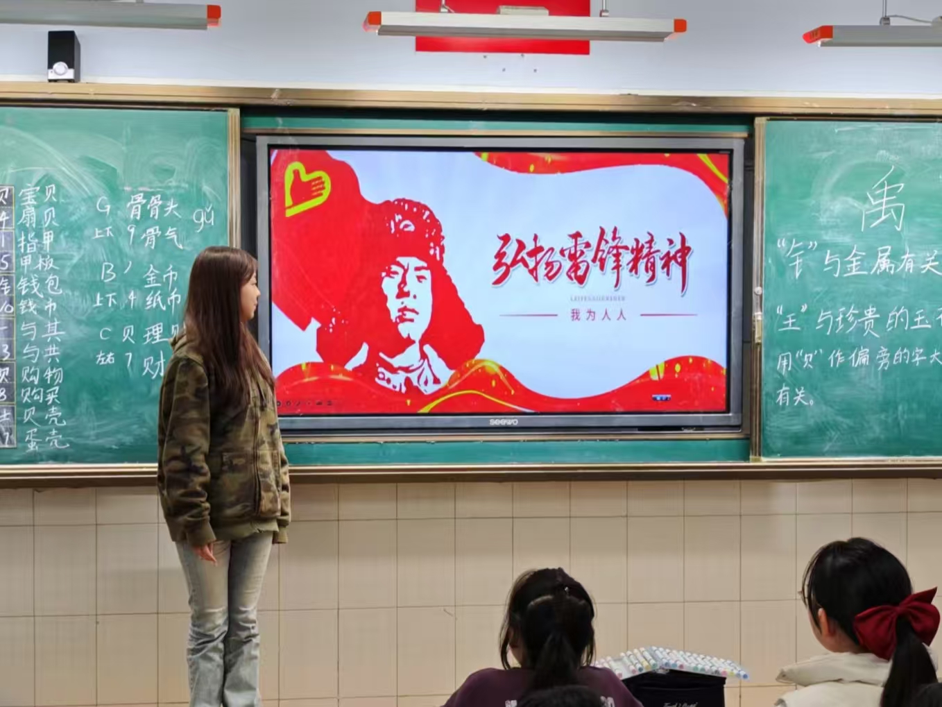 活动伊始,社团的同学们借助课件与视频向孩子们生动讲述了雷锋的生平故事。雷锋同志艰苦的童年经历,到成年后在岗位上无私奉献、帮助他人的桩桩善举,深深吸引了孩子们的目光。在随后的互动环节中,孩子们也都踊跃参与,回答各不相同。活动最后,在社团的同学们的指导下,孩子们分组完成了“微公益任务卡”,绘制了“班级好人好事树”,共同记录下日常生活中的互助行为。每一张卡片都饱含着孩子们对雷锋的崇敬与赞美,他们用独特的艺术语言,表达着传承雷锋精神的坚定决心。