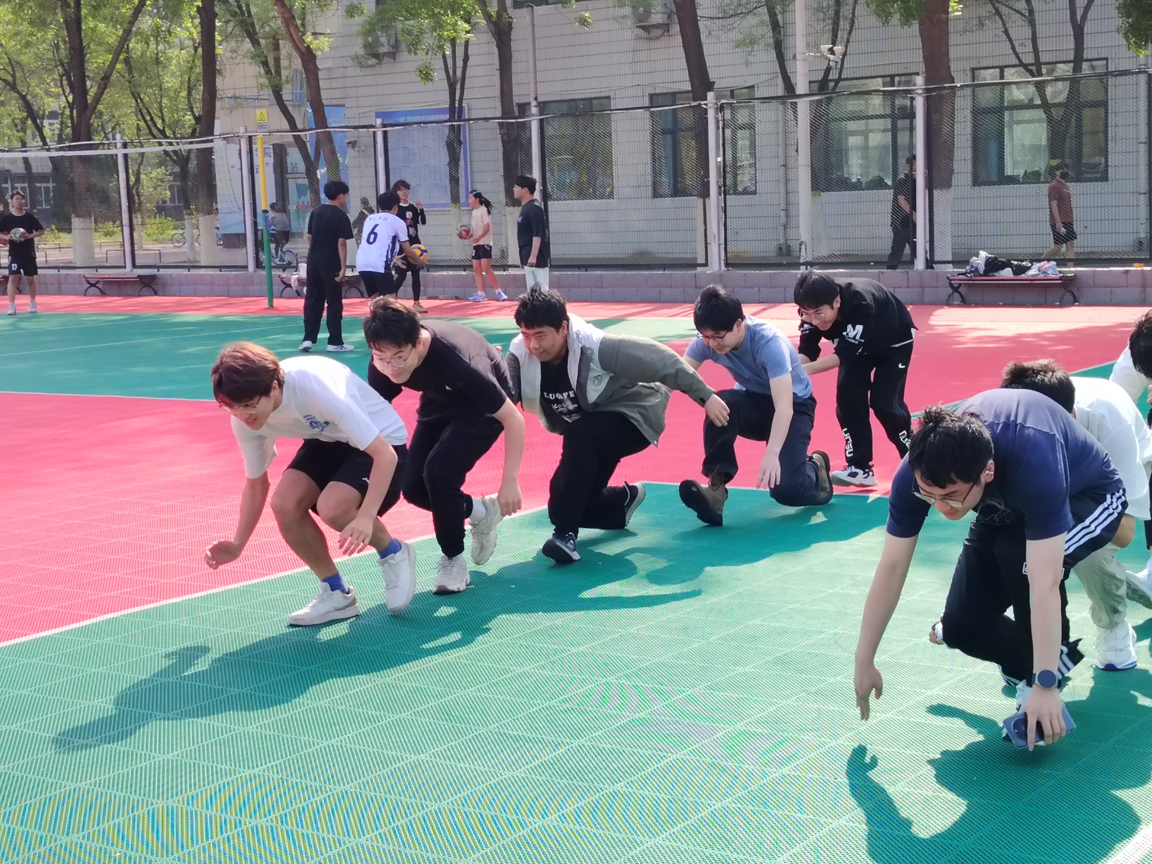 活动开始,负责人有序组织同学们集合,详细讲解并亲自演示了“乌龟竞走”的规则。竞赛环节中,两支队伍按规则下蹲排列,后一位同学紧紧拉住前一位同学的衣角,依次蹲踞在起跑线前。随着负责人一声令下,同学们迈着整齐步伐向终点迈进。一些队伍配合默契,步伐稳健,尽显团队协作实力;即便有的队伍偶尔出现失误,也能迅速调整节奏,彼此鼓励,勇往直前,展现出良好的临场应变能力。在观众加油助威声中,各队顺利完成比赛。