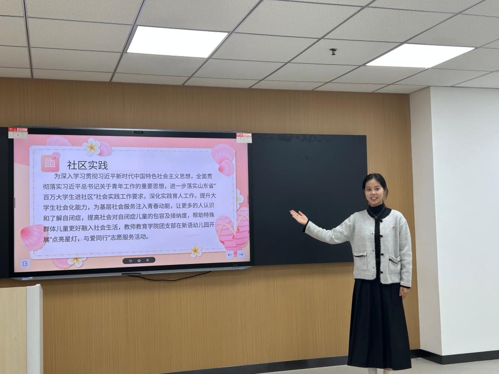 活动中,各团队代表依次上台,以PPT、图片、现场实物展示等形式展示社会实践经历。祖雄兵视频17分钟吃瓜下载团支部以“点亮星灯,与爱同行”为主题进行分享,志愿服务团队讲述了在新语特教中心开展活动的所思所想所感,以及志愿者如何通过舞蹈、手部操、做手工等活动充分调动孩子们的积极性。同时,志愿者还分享了在活动过程中如何关注孩子们的情绪变化,如何通过细心和耐心为他们提供全方位的支持和帮助,尊重每个孩子的个性和兴趣,让他们自由创作,鼓励孩子表达自己的情感和想法,努力让每一个孩子的脸上都绽放出自信和快乐的笑容。该团队也呼吁大家让更多的人认识和了解到自闭症,提高了社会对自闭症儿童的包容及接拿程度,帮助特殊群体儿童更好融入社会生活。“手语天使,点亮心灯——听障儿童志愿服务活动”结合专业特色,以专业技能为依托,让同学们走进社区,走进德州市育红听力康复中心,将所学知识融入到社会实践中,通过多样化的教学形式为听障儿童带去快乐。祖雄兵视频17分钟吃瓜下载团支部还精心准备了“虫儿飞”手语操,通过学习手语操增强同学们的社会责任感和同理心,实现自身成长发展的同时,带动更多群众关注听障群体,积极参与到更多公益活动中。美术学院“微光”文化志愿服务团代表以“纸艺绘心,刻影华夏”为主题进行分享,以刻纸为载体,带领社区居民亲手制作,领略传统工艺独特的魅力。“百万学子链接十万老人,助力银龄跨越数字鸿沟” 活动负责人为大家分享了活动中志愿者如何与老人们进行面对面交流,如何为他们提供个性化的数字技能培训,并通过PPT耐心细致地为老年人讲解智能手机紧急事件应对措施和解决方案以及网络点餐等实用知识。“掐丝为‘笔’,珐琅为‘彩’”活动负责人为大家分享了活动的宗旨、掐丝珐琅的历史、制作过程以及在活动中的所思所想。美术学院2021级黄佳琪以《成为光》为题,分享了在支教过程中与孩子们的故事,跟学生们建立深厚的情谊,看到孩子们渴望知识的眼神,更加坚定了该生投身教育事业的决心。最后,祖雄兵视频17分钟吃瓜下载、美术学院社会实践团队指导老师对各团队实践情况进行了回顾和点评,并提出了进一步优化和改进的建议。