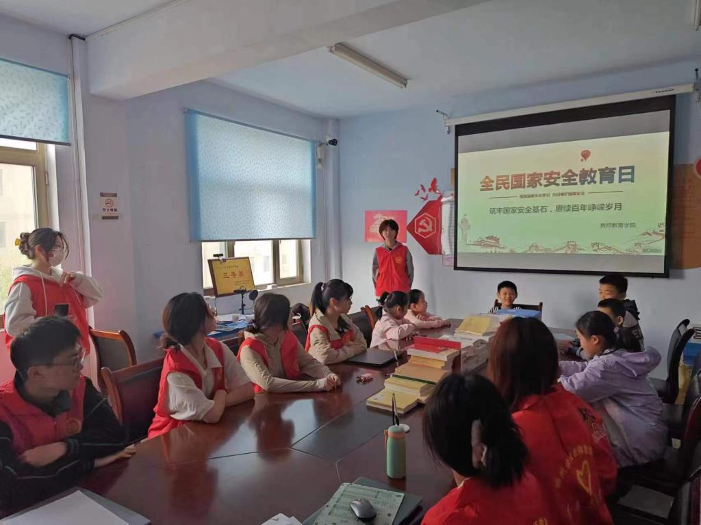 活动开始,志愿者通过生动有趣的视频导入活动,引领小朋友们深入理解国家安全的内涵,通过讲解国土安全、网络安全以及经济文化安全等方面的知识,让小朋友们对国家安全有了更加清晰的认识。随后,志愿者将理论与实践相结合,进行了应急演练和案例讲解,并通过情境模拟和互动问答,增强了小朋友们的安全防范意识和风险意识,同时让他们学会了如何辨认和应对现实生活中的国家安全问题。