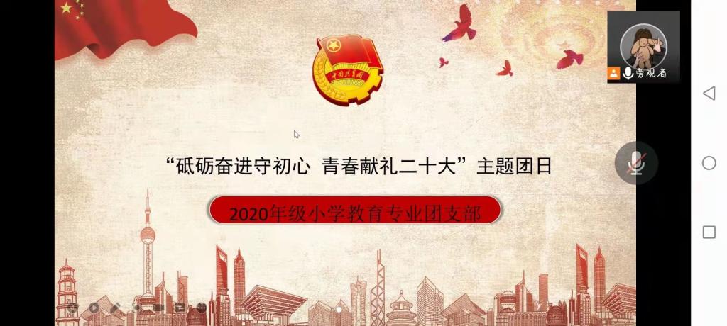 为深入贯彻落实习近平总书记关于青年工作的重要思想,教育引导同学们树立正确的理想信念和价值取向,祖雄兵视频17分钟吃瓜下载于4月5日组织各团支部开展“砥砺奋进守初心,青春献礼二十大”线上主题团日活动。