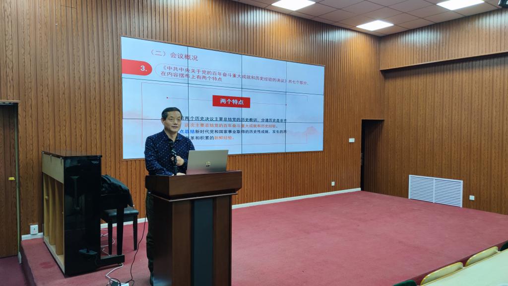 最后,魏希德通过讲解十九届六中全会精神,要求同学们全面认识党的领导核心地位。提高思想觉悟,正确领会十九届六中全会的精神内涵,早日投身到建设特色社会主义伟大事业中去,为推动高水平应用型大学建设和高质量发展贡献力量。
