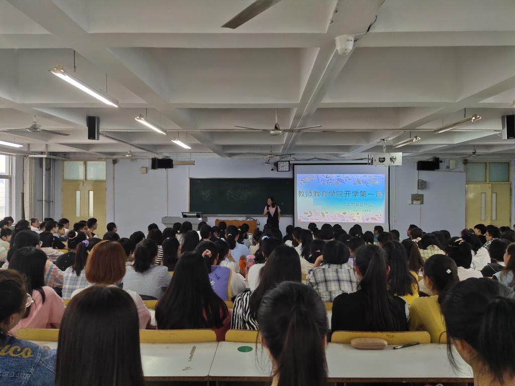 此次讲座由我院张楠老师主讲,张楠老师在我院工作多年,具有深刻的工作经验,张楠老师从自身出发,以开学第一课为切入,围绕四有好老师为主题。四有好老师是指有理想信念、有道德情操、有扎实学识、有仁爱之心的“四有”好老师。在此次讲座上,张楠为新生成为四有好老师提出四点建议。首先,我们树立坚定的职业理想信念,确定未来职业发展的目标。坚定的职业理想信念是爱岗敬业的前提和根本,同时也是推动职业向前发展的精神动力。作为一名在读师范生,就必须树立坚定的职业理想信念,确定未来职业发展的目标;其次,培养高尚的职业道德情操,树立高尚的道德志趣。“古人认为,一个人要达到人生的最高境界,首先要树立高尚的道德志趣,实现崇高的道德理想”。做教师的更要加强职业道德修养,形成高尚的职业操守;再次,增强扎实的职业知识储备,奠定过硬的职业教学本领。扎实的学识是成为“四有”好老师的基础。教师扎实的学识主要包括扎实的知识功底、过硬的教学能力、科学的教学方法。作为一名在读师范生,必须要增强扎实的职业知识储备,奠定过硬的职业教学本领;最后,作为一名在读师范生要想以后成为一名“四有”好教师必须要培养宽厚的职业仁爱之心,提供学生健康成长的保障。