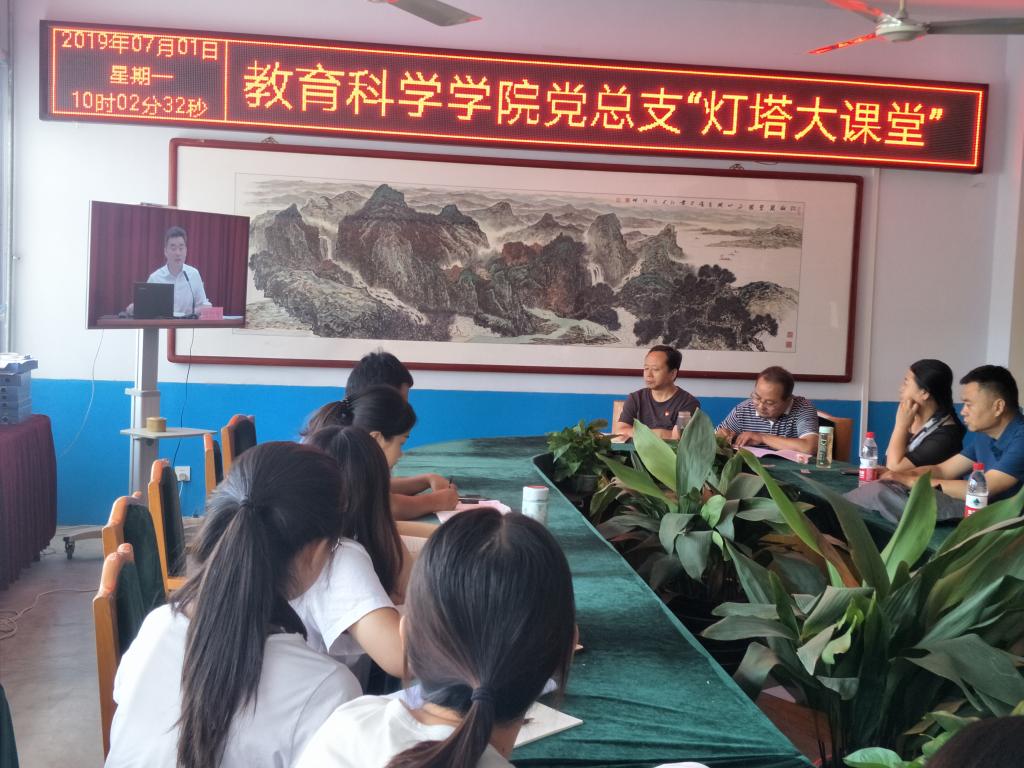 为配合全省“不忘初心、牢记使命”主题教育,进一步发挥“灯塔-党建在线”作用,加强对全省党员教育培训的组织指导,德州学院教育科学学院于7月1日在知行楼会议室成功组织观看“灯塔大课堂”