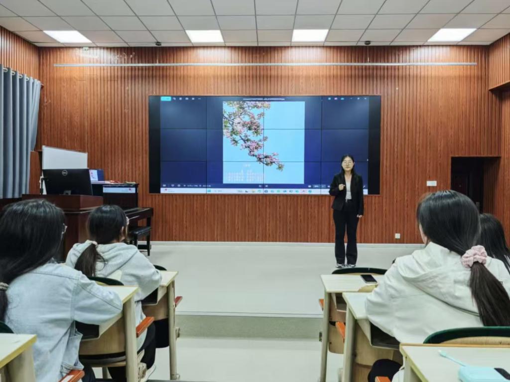 自活动通知发布起,同学们积极响应,纷纷拿起相机、手机,穿梭在校园的各个角落。他们聚焦于盛开的花朵、嫩绿的枝芽、葱郁的草地,以及在春日中充满活力的校园建筑和师生身影,用独特的视角记录下校园春天的美好瞬间。除了照片,同学们还精心拍摄视频,全方位展现校园春日的灵动之美。不少同学发挥文学才华,为自己的摄影作品附上优美的诗词,或是经典的古诗新韵,或是原创的清新短句,诗与影相得益彰。活动当天,现场洋溢着春天的气息。摄影作品分区陈列,大屏幕上循环播放着精选视频。同学们三三两两地在展区间穿行,有人俯身细看照片细节,有人驻足欣赏视频画面。清晰的光影构图和流畅的剪辑手法,让不少同学发出赞叹,现场气氛轻松而热烈。