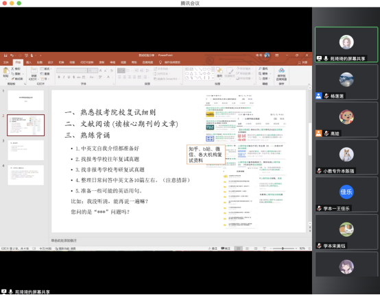 本次线上分享会的召开为我院学子在复试调剂和的关键环节提供了指导、指明了方向,有助于同学们坚定信心、调整心态、科学合理地准备复试与调剂。我院将继续抓好考研精准指导、服务工作,全面助推考研学生实现深造梦想!