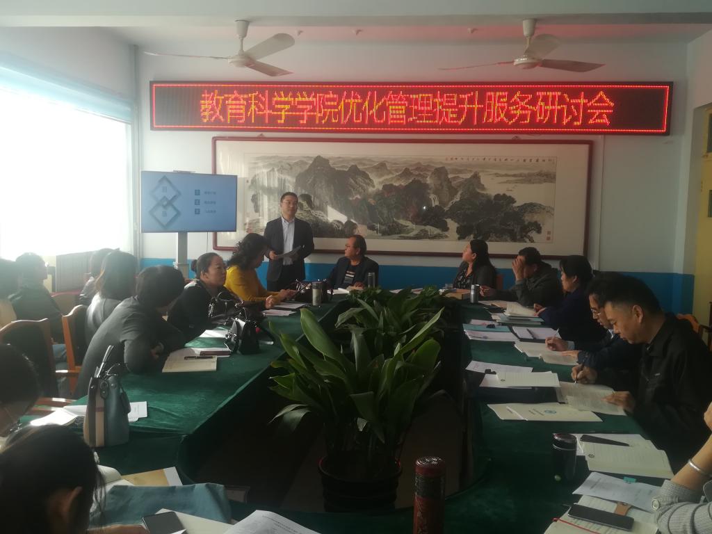 2019年10月15日,我院在会议室召开“优化管理、提升服务”研讨交流会。值此我院学前教育专业师范专业认证之际,此次研讨交流会围绕“优化管理、提升服务”主题展开。我院教师宫顺升结合自己两年来的工作,展示了自己制作的《作为服务人员的一点体会》PPT课件。宫老师就“管理”和“服务”内涵及二者之间的关系分享了自己的体会。同时,宫老师从规划、责任及方法三个方面就如何优化管理、提升服务进行了深入地探索和思考。以做好服务的心态促进管理的优化、“承担本职、做好本职、合作他职”等提法令全体管理人员耳目一新,大受启发。宫老师的分享不时赢得全体教职工的阵阵掌声。