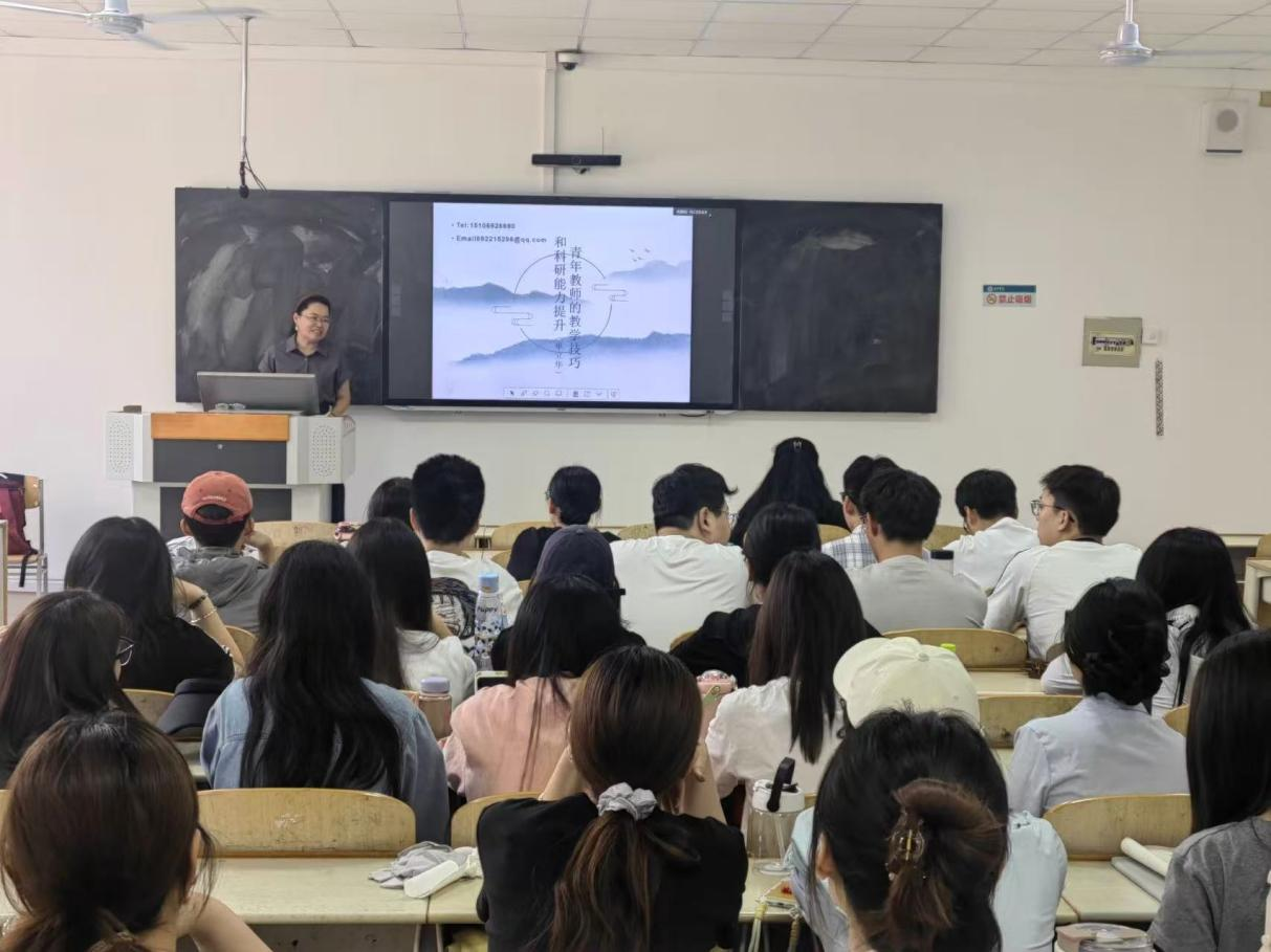 单立华老师以“青年教师教学技巧和科研能力提升”为主题,巧妙地引用王国维的人生三境界,深入浅出地阐述了青年教师在成长道路上如何逐步提升教学技巧和科研能力。她结合自身丰富的教学经验,分享了诸多实用的经验方法,让在场学生受益匪浅。同时,单老师还现场展示了 “The ABC song” 的精彩课堂,生动形象地展现了教学技巧在实际课堂中的运用,赢得了同学们的阵阵掌声。
